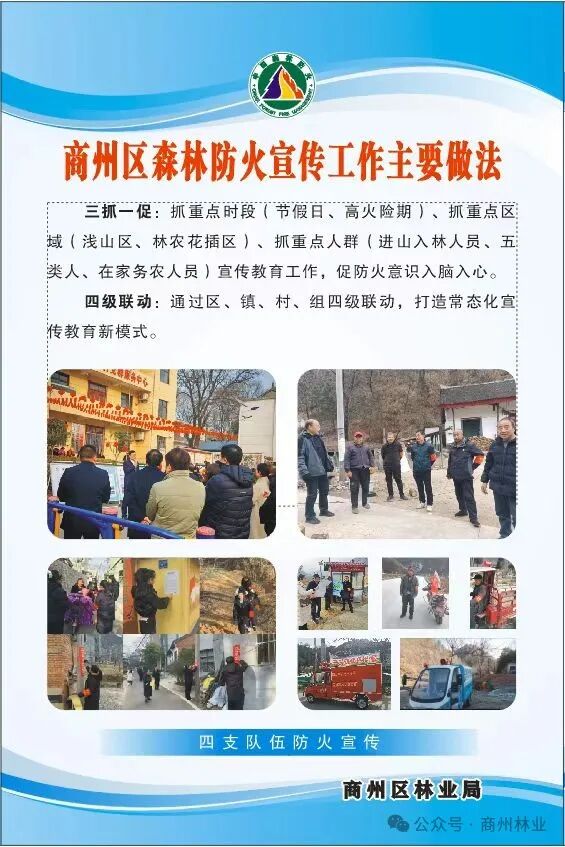 三抓一促:抓重点时段(节假日、高火险期)、抓重点区域(浅山区、林农花插区)、抓重点人群(进山入林人员、在家务农人员、五类人)宣传教育工作,促防火意识入脑入心。