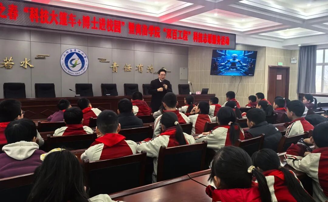 科技是国家强盛之基,创新是民族进步之魂。为了给师生们提供了一个近距离接触科技、感受科技魅力的平台,让同学们在校园里就能领略到科技的无限风光。年3月11日,由市科协、商洛学院、县教育体育局、县科协、县公安局共同举办——商洛市第三十三届科技之春“科普大篷车+博士进校园暨商洛学院“双百工程”科技志愿服务活动山阳站“对话未来”主题活动在山阳县第四小学成功举行。商洛市科协、商洛学院、山阳县教育和体育局、山阳县公安局、山阳县科协等领导专家参加了活动。山阳县第四小学支部书记、校长祝巍巍在开幕式上致辞,商洛市科协科普部部长陈淑萍宣布开幕。