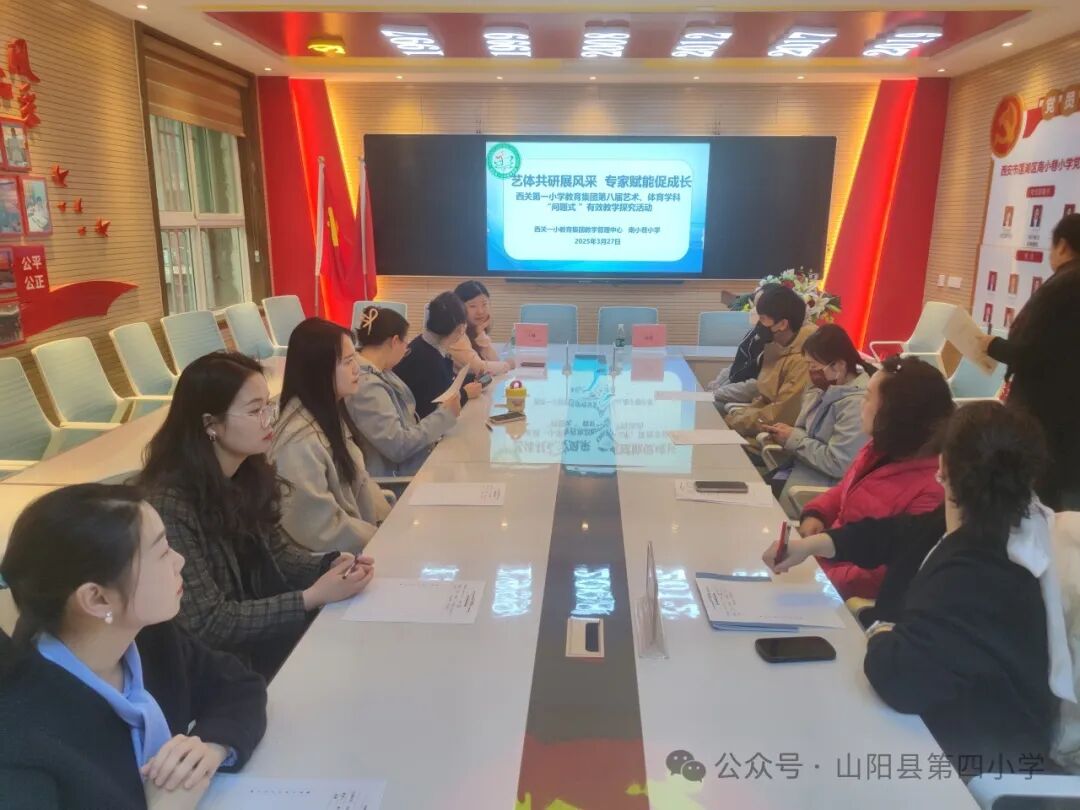 3月27上午,在西关一小的安排下,山阳县第四小学三名音美老师在莲湖区南小巷小学参加了第八届艺术、体育学科“问题式”有效教学探究及教研论坛。