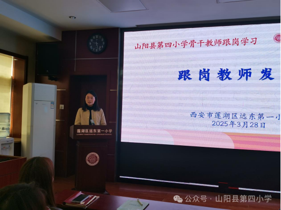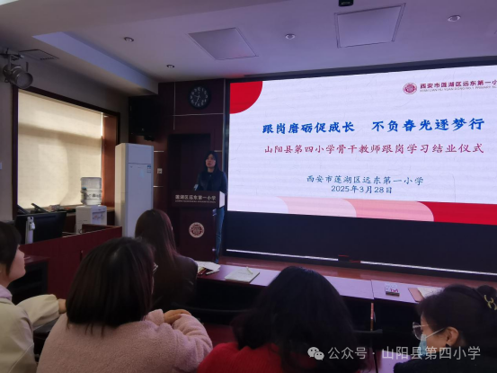 山阳县第四小学汤海玉老师、祁阳老师进行了跟岗学习感悟分享,他们纷纷表示,将把所学所悟带回自己的学校,运用到实际教学中,努力提升教学质量,为学生的成长贡献更多的力量。