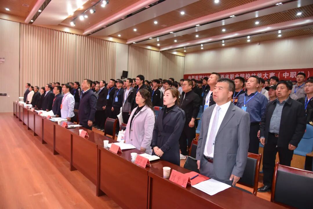开幕式由洛南县教体局局长武锋主持。在庄严的国歌声中,全体参会人员肃立致敬,共同见证这一职业教育领域的重要时刻。洛南县人民政府党组成员、三级调研员景建民在致辞中表示,洛南县作为“汉字故里”,始终坚持“人才强县”战略,将职业教育作为推动县域经济发展的重要引擎。他指出,本次大赛在洛南举办,既是对我县职业教育成果的检验,也是展示地方文化与产业特色的重要窗口。