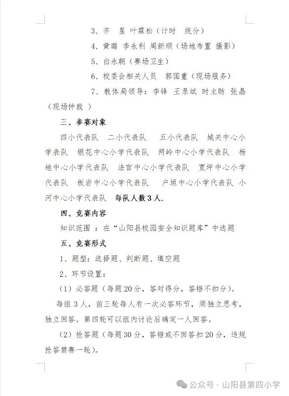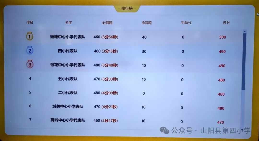 本次山阳县校园安全管理知识竞赛小学组四小赛区初赛已圆满落幕。这场赛事是知识的交流,更是守护校园安全的行动号角。愿各校以赛为新起点,持续夯实安全管理。相信在各方努力下,山阳校园定能满溢安全和谐,为学子成长全力护航 。