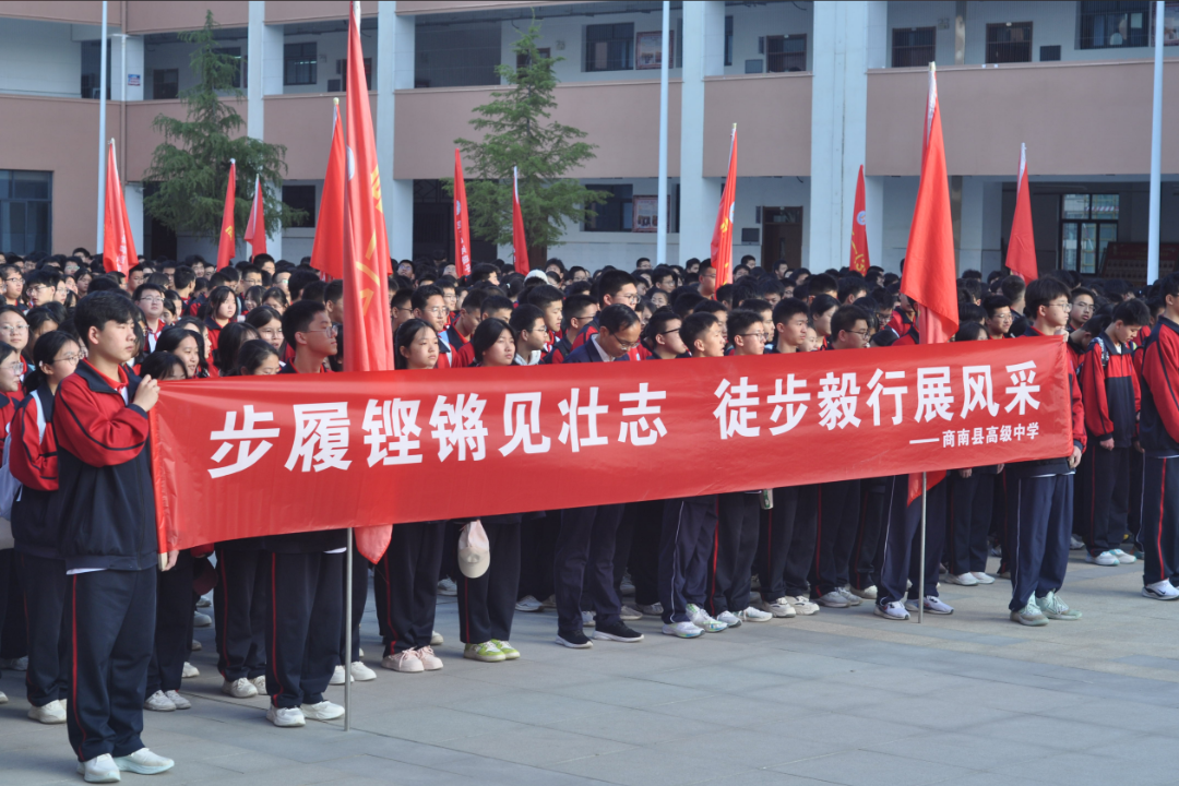 早上 7:00,同学们身着统一校服,精神饱满地于操场集合,参加出征仪式。校领导热情洋溢的动员讲话,着重阐述了砺志研学的重要意义,激励同学们勇毅向前、战胜困难,同时对活动安全事项予以细致叮嘱。随后一声令下,高一全体师生高举旗帜,步伐整齐,正式踏上本次研学拉练之旅。