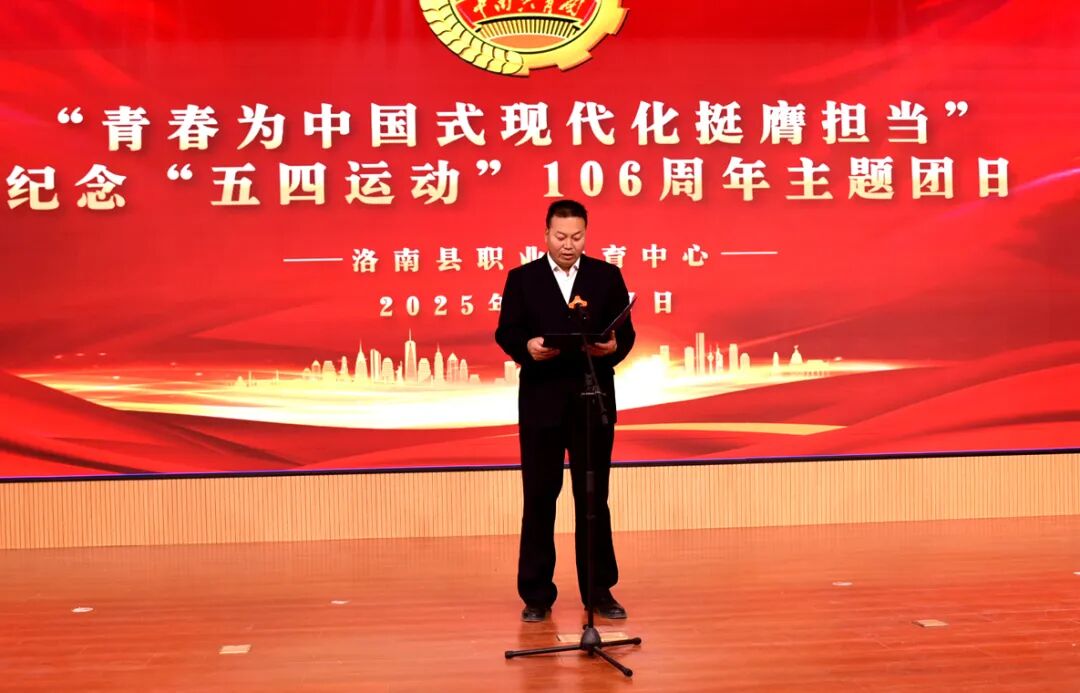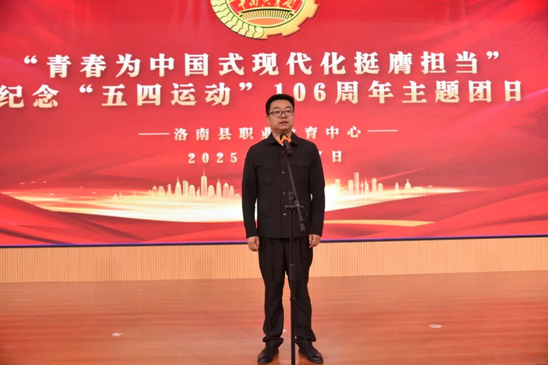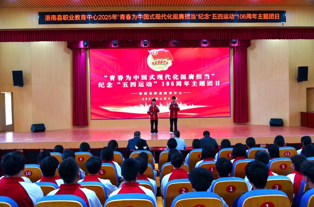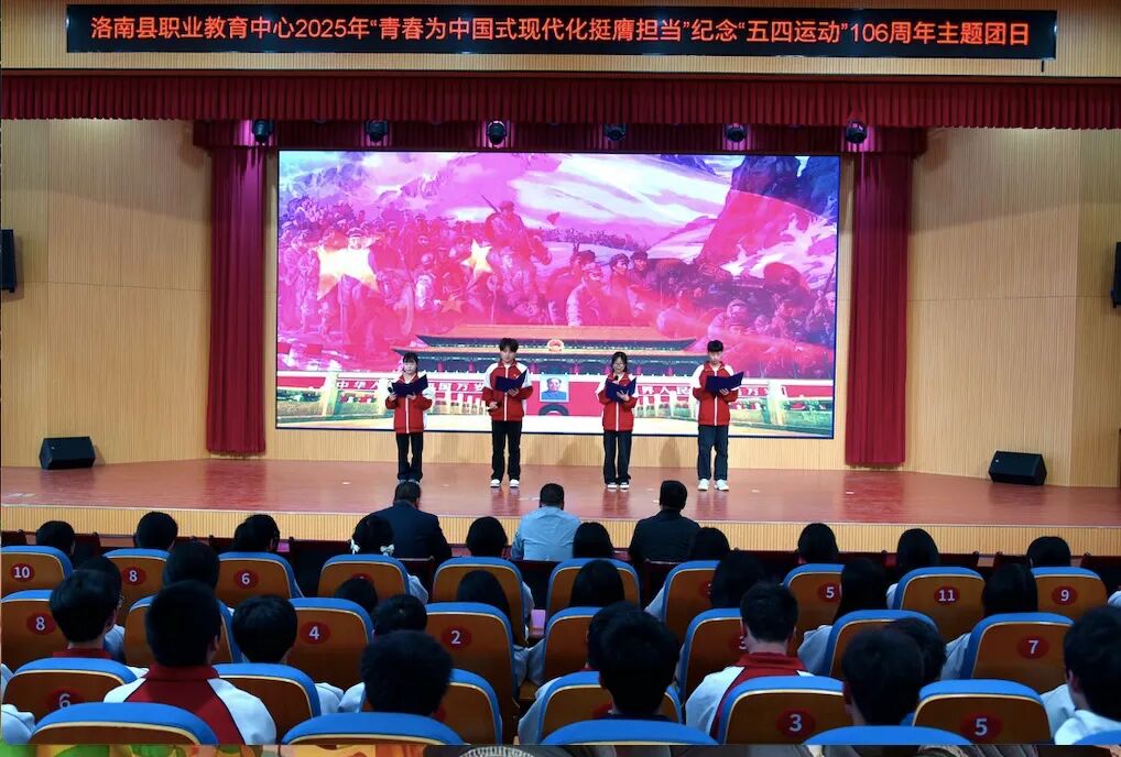 4月27日,商洛市洛南县职业教育中心“青春为中国式现代化挺膺担当”纪念“五四运动”106周年主题团日活动在实训楼举行。党总支书记何平平、教务处主任李智平、团委书记周鹏与150名老团员及120名新团员齐聚一堂,以青春之名致敬百年五四精神,以实际行动践行新时代青年使命。