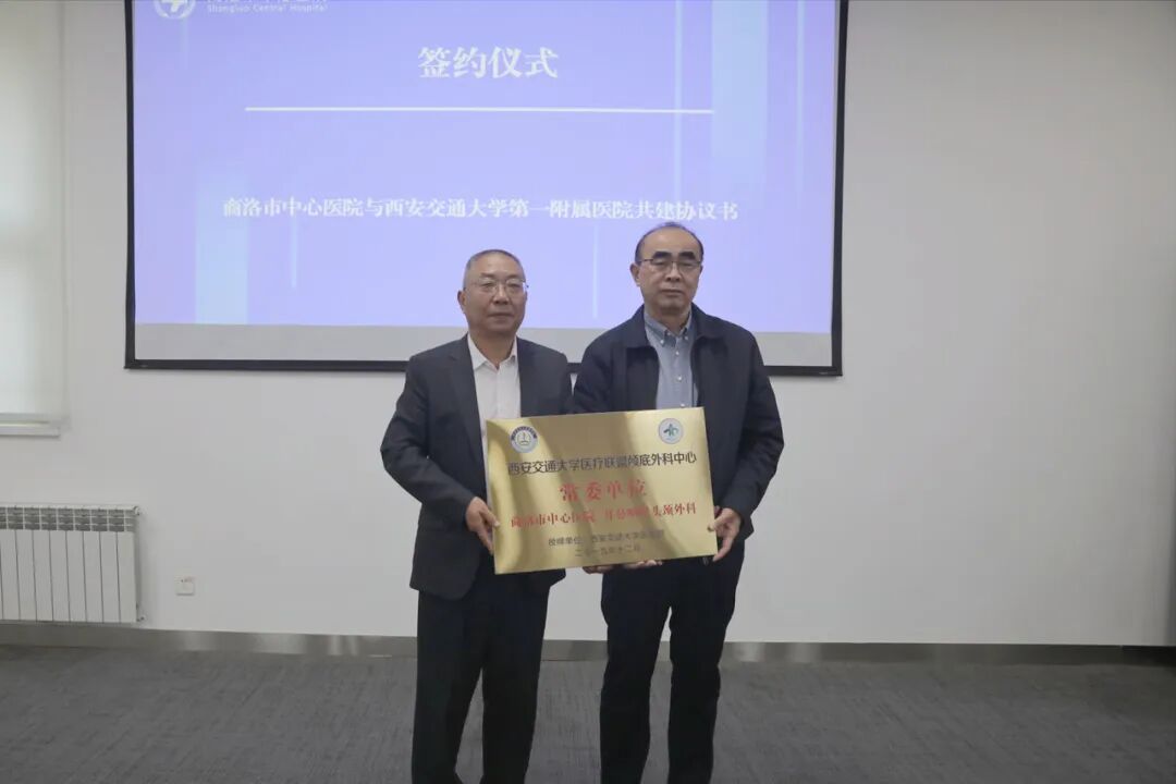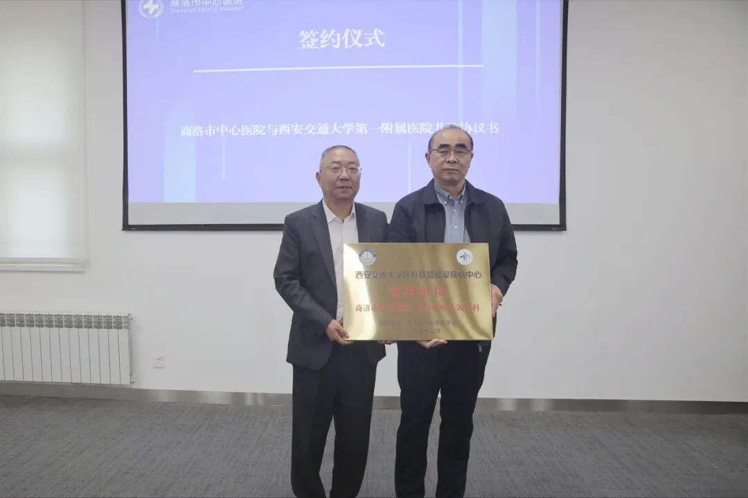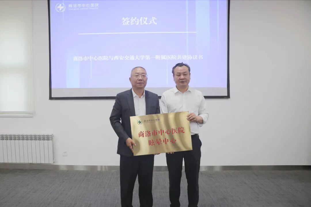 会议由商洛市中心医院耳鼻喉头颈外科副主任医师房娟主持。党委书记、院长李银山将医院近况及耳鼻喉头颈外科发展情况作了简单介绍,希望借助此次协作,科室在诊疗水平及科研技术等多个方面能够得到提升。随后,双方签订学科共建协议,授牌商洛市中心医院耳鼻喉头颈外科为西安交通大学医疗联盟眩晕疾病中心常委单位、西安交通大学医疗联盟颅底外科中心常委单位、商洛市中心医院眩晕中心、商洛市中心医院睡眠中心。授课环节,李白芽教授介绍了西安交通大学第一附属医院的变迁,并分享了眩晕学科建设的经验,申震教授分享了睡眠呼吸筛查与管理。