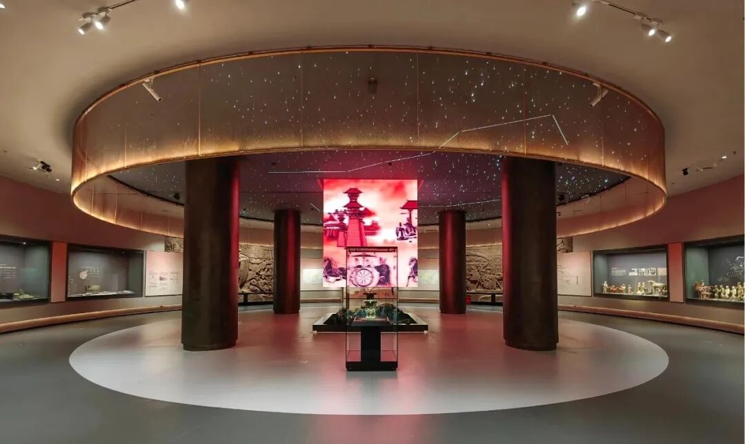 第二展厅采用“天圆地方”的传统空间理念,以秦岭与周秦汉唐时期的大一统格局关系为叙事主线,创新设置“中华廊道”与“丝绸之路”两条文化走廊,前者聚焦秦岭域内的历史通道,后者展现从秦岭通往世界的丝路文明。两条文化走廊相互呼应,巧妙贯穿展览的核心主题与思想内涵。