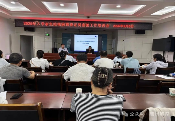 为进一步筑牢辖区结核病防控安全防线,切实做好新生入学结核病筛查查验工作,保障广大师生身体健康与校园公共卫生安全,9月5日上午,商洛市商州区疾控中心组织召开结核病防控工作推进会暨新生入学结核病筛查证明查验培训会议。基层医疗机构和社区卫生服务中心结核病项目负责人员,共计20余人参加会议。