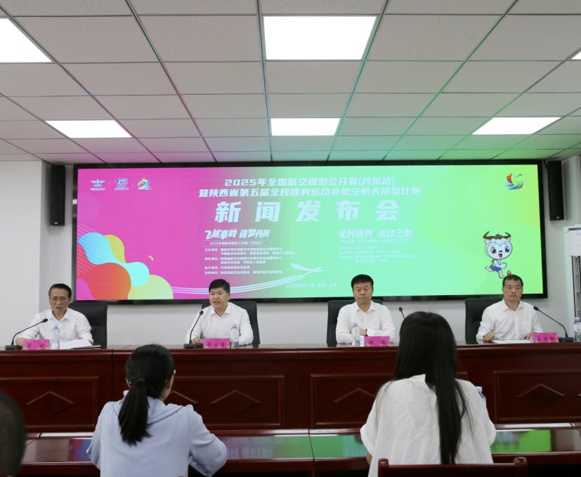 9月12日,2025年全国航空模型公开赛(丹凤站)暨陕西省第五届全民健身运动会航空航天模型比赛新闻发布会在丹凤县举行。丹凤县委常委、宣传部部长陈永富主持发布会,丹凤县副县长郝浩致辞,丹凤县教体局相关负责人介绍比赛有关情况,省市有关新闻媒体参加了新闻发布会。