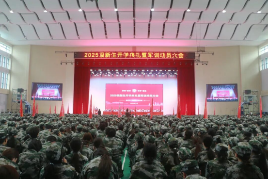 动员大会在《义勇军进行曲》的庄严旋律中启动,参会师生和教官全体肃立、齐唱国歌。