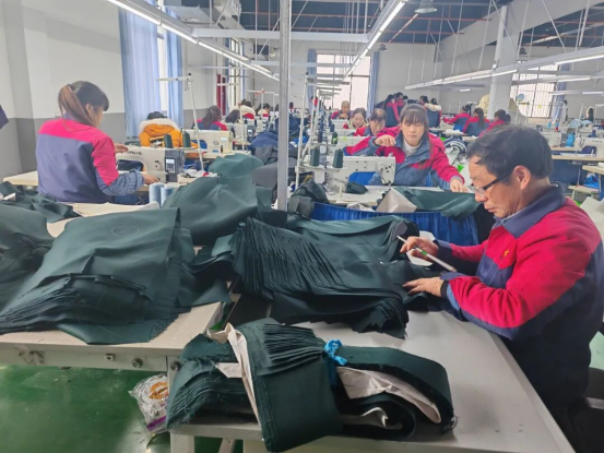 金翼服装厂内,务工群众正在岗位上井然有序地开展作业。