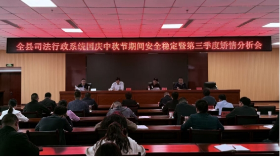 9月26日,商洛市山阳县司法局召开全县司法行政系统2025年国庆中秋“双节”期间安全稳定工作暨第三季度矫情分析会,县司法局及下属单位全体干部职工、各司法所所长参加会议。会上,传达学习了省市县有关安全稳定工作会议及文件精神,通报了前三季度社区矫正及安置帮教工作情况,4名司法所所长作交流发言,对国庆中秋“双节”期间社区矫正对象监管、安置帮教、纠纷化解、应急值守、假期安全等工作进行了全面安排部署。同时,还就司法所规范化建设、法治督察等当前工作提出了具体要求。