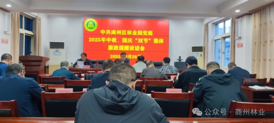 中秋、国庆“双节”将至,为持续加固中央八项规定精神堤坝,营造风清气正、安全祥和的节日氛围,2025年9月28日,商洛市商州区林业局党组召开2025年中秋、国庆“双节”集体廉政提醒谈话会。局党组成员、机关各股室及局属各单位负责人参加会议。