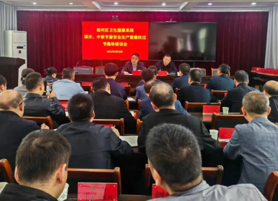 在中秋、国庆双节来临之际,为深入贯彻落实习近平总书记关于安全生产和全面从严治党的重要论述,进一步统筹推进节日期间安全生产与党风廉政建设工作,筑牢安全防线、严明纪律底线,营造平安祥和、风清气正的节日氛围,9 月 26 日上午,商洛市商州区卫生健康局在局机关五楼会议室组织召开全系统双节和全会期间安全生产暨廉政过节集体谈话会。会议由局党组书记、局长王丹彤主持,局领导班子成员、驻局纪检组组长田卫东到会指导。