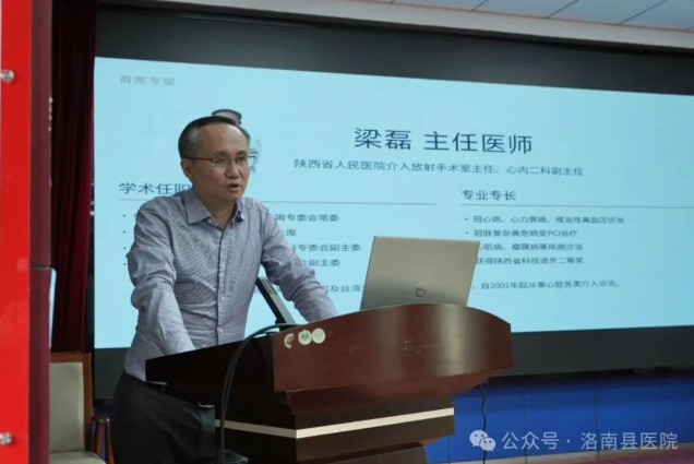 会议在洛南县医院医技楼五楼会议室隆重举办。县医院心血管内科主任王晓敏担任主持,副院长吴双寿致开幕辞。陕西省人民医院专家梁磊代表联盟致辞,强调了专科联盟在技术帮扶与人才培养中的桥梁作用,并表达了对持续提升县域医疗服务能力的坚定支持与殷切期望。卫健局黄念良股长、县医院、中医医院、妇保院等单位医务工作者参加了本次会议。