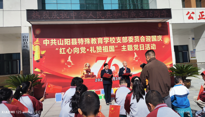 中华人民共和国成立76周年之际,商洛市山阳县特殊教育学校于2025年9月30日上午组织全体师生在操场举行"红心向党,礼赞祖国"庆国庆主题教育活动。活动旨在激发学生爱国情怀,营造团结向上、充满关爱的节日氛围。