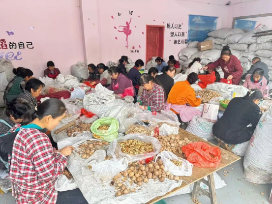 如今,这样的核桃加工点在古城镇有4家。每年,这些加工点要收购400余吨核桃,经过破壳、取仁、分拣等工序,能产出200至350吨优质核桃仁,每斤售价达13元左右,带动周边近百名群众实现稳定就业,人均年增收约3000元。小小的核桃,不仅让本地农产品从“原果”变成“精品”,更让周边群众在家门口就能找到稳定活计,实现了“顾家”与“增收”的双赢。