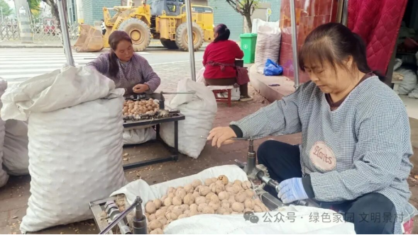 刚送完孩子上学,返回自己工位的王春玲一边娴熟地剥核桃皮、一边开心地说,“剥核桃仁这活儿门槛低、难度小,我通常在忙完自家事务后才抽空来这里剥核桃,最后按核桃果的重量结算工资,我一天都能有50到60元的收入。”