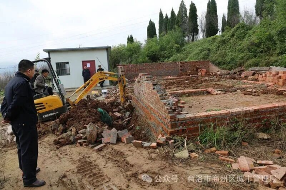 2025年10月15日上午,商洛市商州区城市管理局组织城管综合执法大队城关城管执法中队与城关街道办事处、商州公安城管警察中队联合执法,依法对和平社区九组刘某泉在金凤山景区公园内违法抢建的124.6平方米的违法建筑进行了强制拆除。