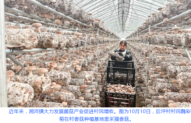 “现在每天能在家门口挣钱,还能照顾家里的老人孩子,心里踏实得很!”提及如今的生活,魏彩菊的脸上满是笑容。而这份踏实,还将迎来更大的升级——湘河镇政府相关负责人表示,下一步,当地将依托现有的两个香菇基地,推动产业从规模化向高品质转型:引进花菇培育技术,通过调控温度、湿度培育出菌盖厚实、花纹清晰的高端花菇,让香菇从论筐卖的普通农产品升级为论个卖的优质商品,进一步提高产业附加值。