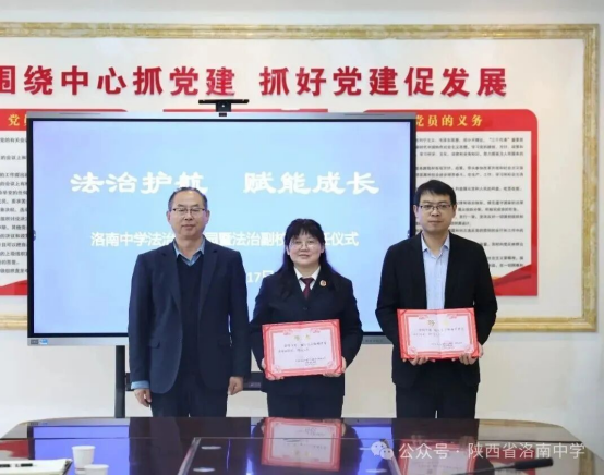 为筑牢校园安全防线,10月17日,商洛市洛南中学隆重举行“法治进校园”主题活动暨“法治副校长”聘任仪式。刘臻、张祎两位新任“法治副校长”正式履职,共同为校园法治建设注入专业力量。