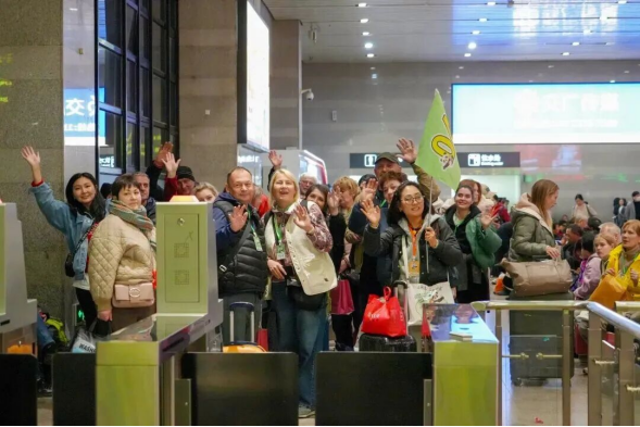 10月26日21时18分,“首趟俄罗斯青少年游学团专列”Y489次从国铁北京局北京西站鸣笛启程,满载300余名俄罗斯游客,开启为期6天的“中国古都之旅”。列车将依次停靠洛阳、西安、丹凤三座历史文化名城。一段跨越山河的文化之旅正式展开。