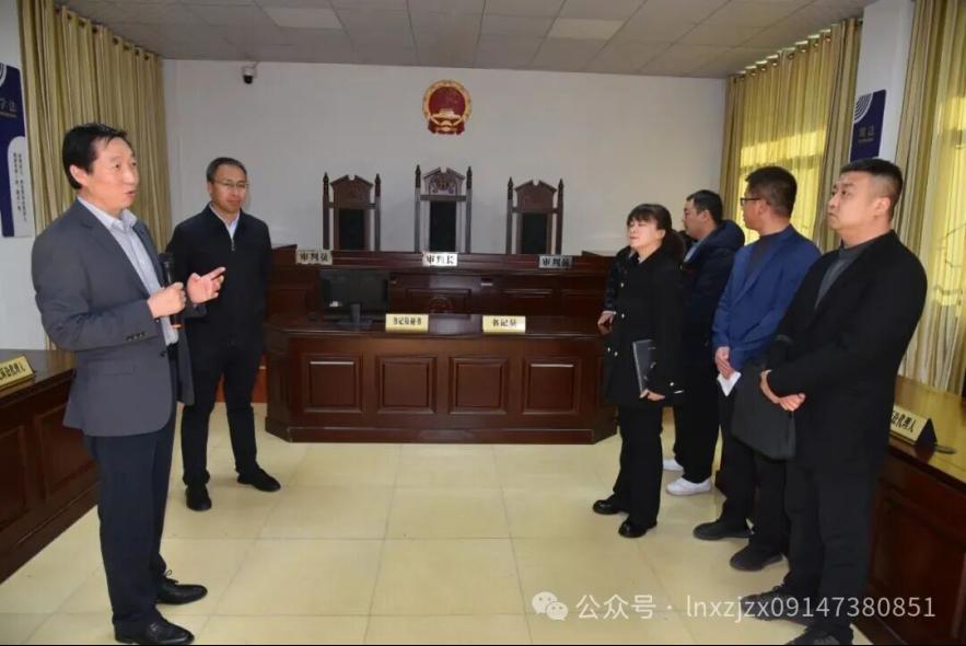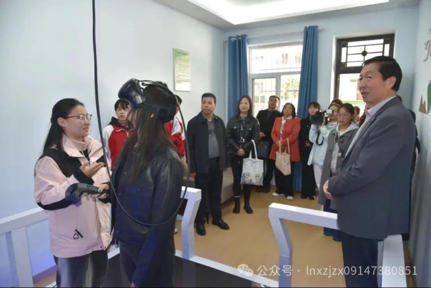 会前,与会领导参观了学校校园监控室、工业机器人实训室、中餐酒店实训室、心理健康教育基地及模拟法庭,详细了解学校办学特色与法治教育阵地建设情况。