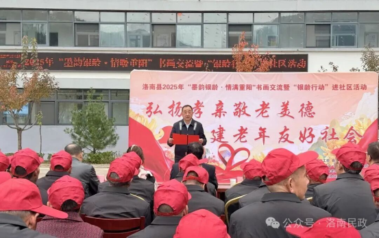 10月29日,商洛市洛南县2025年“墨韵银龄·情满重阳”书画交流暨“银龄行动”进社区活动在巡检区域敬老院温情举行。县政府党组成员、三级调研员景建民出席活动。县委组织部、县委文明办、县委社工部、县民政局及各包村单位负责人共同参与,与老人们欢聚一堂,共庆重阳佳节。