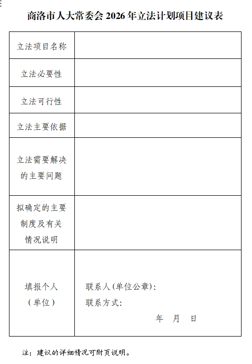 为深入践行全过程人民民主,编制好市人大常委会2026年立法工作计划,进一步增强地方人大立法工作的针对性和实效性,依据立法法有关规定,现向社会公开征集立法建议项目。