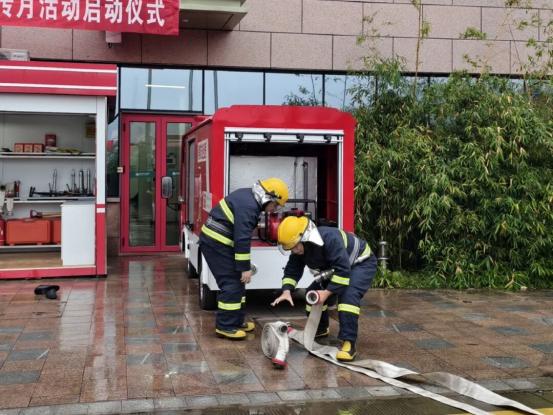 启动仪式后,微型消防站队员现场展示了30秒着装及初期火灾扑救技能。随后,唐红涛带领医院消防安全管理主要负责人前往中控室、高位水箱室等处实地了解系统运行情况,检查病区消防安全状况。同时,治安保障科于门诊大厅设置消防知识宣传展板,发放消防安全常识折页,大力普及消防法律法规与日常防控常识。