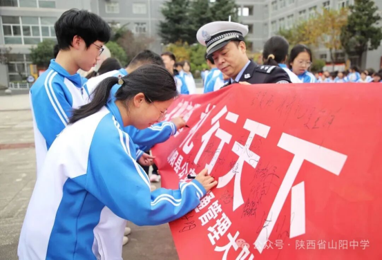 活动最后,同学们在“文明交通,礼行天下”横幅上郑重签名,许下践行法治的庄严承诺。
