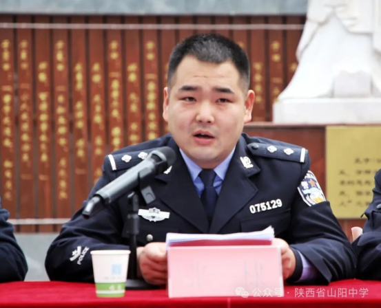 聘任仪式后,山阳县公安局民警张棣以“以法为盾,护航青春成长之路”为题,结合真实案例,深入浅出地讲解了校园欺凌、网络安全等法律知识,引导学生树立底线意识,学会用法律保护自己。