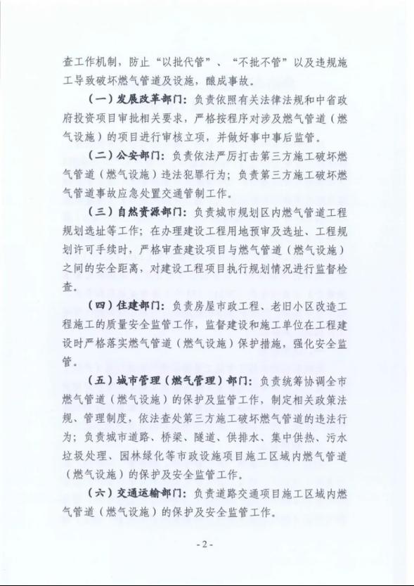 燃气管道作为城市的“生命线”,是城市基础设施的重要组成部分。本机制的建立,将全面构建职责清晰、分工明确、协同高效、齐抓共管的燃气管道保护工作格局,能够有效降低第三方施工给燃气管道带来的安全风险,保障燃气管道安全运行,切实维护人民生命财产安全和社会公共安全。(来源:公用科、市燃气办文:曾杨)