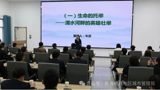 宣讲会上,来自商州区委宣讲团的五位老师,分别围绕“生命的托举——渭水河畔的英雄壮举”“乡土的滋养——平凡人生的善良底色”“勇者的抉择——精神文明的英雄答卷”“爱心的汇聚——微光成炬的社会回响”“行动的接力——英雄精神的薪火相传”五个主题,以清晰质朴的语言和真挚饱满的情感,生动讲述了李静毅同志在危急时刻挺身而出的英勇选择、成长过程中积淀的朴实品格,以及其善行引发的社会共鸣与精神传承。宣讲将英雄形象具象化、精神内涵时代化,令现场城管干部深受触动。