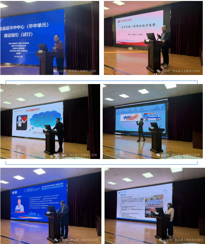 学术培训环节聚焦实操,互动热烈。高江飞主任解读《国家百万减残工程进展及2025年规划》讲授了《中风的识别与诊治》;屈秋民教授分享了《曲抱村脑卒中筛查防治管理工作经验》;高毅军教授解读《2025年陕西省基层卒中中心建设指引评价标准制定》;贾颐教授讲授《经桡动脉脑血管造影术》;刘燕妮主任讲授了《静脉溶栓规范化治疗》;张高峰主任解读了《中国脑血管病一级预防指南》;刘邓晨主任讲授了《溶栓患者的护理》,高江飞主任做会议总结。