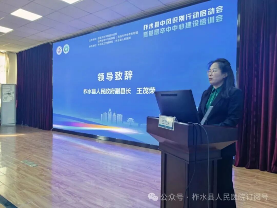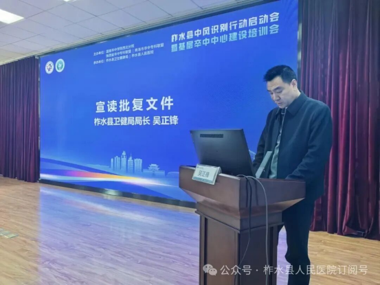 柞水县卫健局局长吴正锋现场宣读“柞水县中风识别行动”批复文件,标志该项工作正式进入实施阶段。