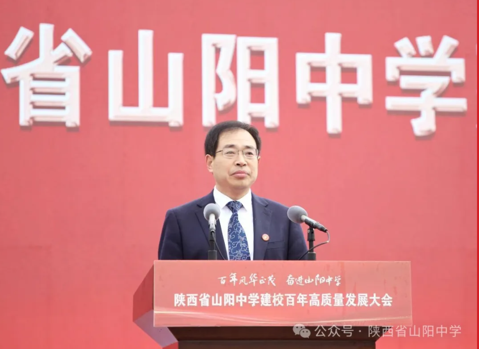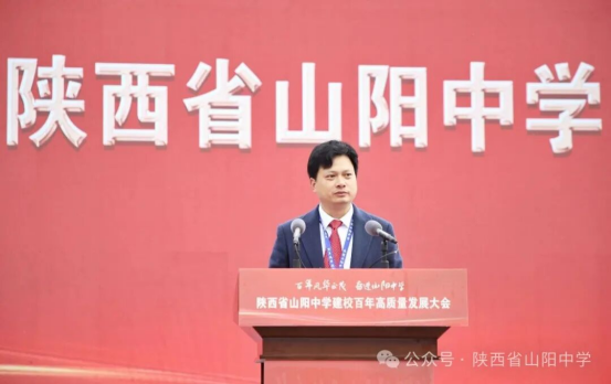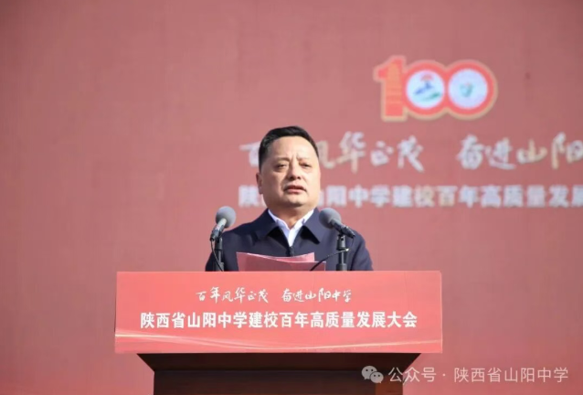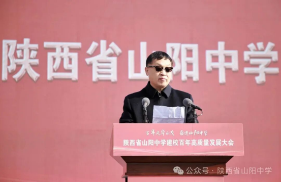 山阳县委书记谢晓军充分肯定了学校百年办学成果,对学校未来发展提出殷切期望,要求坚守为党育人、为国育才初心,为山阳教育高质量发展贡献更大力量,让在场者倍受鼓舞。