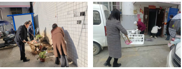 农业站干部整治兑山小区环境卫生