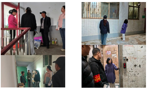 刘涧社区干部在辖区内三无小区检查飞线充电、消防设施安全隐患,督促住户整治楼道环境卫生