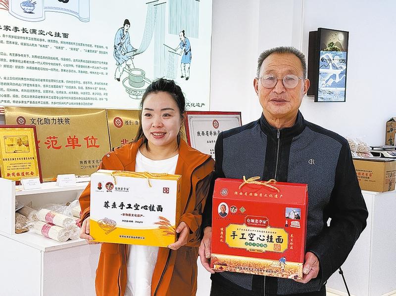 如果说妹妹打开了“窗口”,那么哥哥李念平则是架起了“桥梁”。他不仅跟随父亲潜心学习技艺,成为省级非遗传承人,更深知品牌与文化的力量。利用业余时间,李念平系统地梳理了家族制作手工挂面的历史脉络,运用影音资料进行推广,还积极陪同父亲参加各类非遗展演活动,不断扩大着洛南手工挂面的知名度。