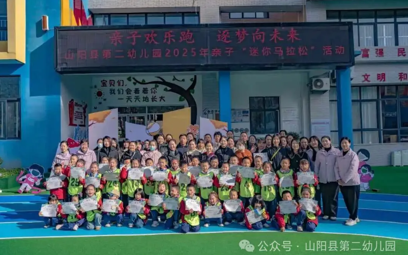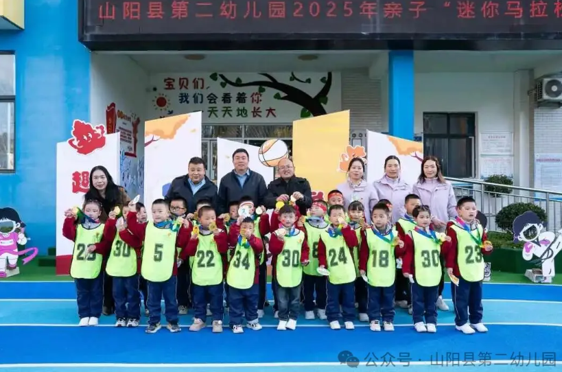 此次大班亲子迷你马拉松活动,不仅让孩子们在运动中强健了体魄、磨炼了意志,更让家长们在高质量陪伴中拉近了与孩子的距离,为大班幼儿的幼儿园生活增添了浓墨重彩的一笔。山阳县第二幼儿园将继续以丰富多元的活动为载体,助力幼儿在快乐中成长、在陪伴中绽放,让每一颗童心都能在爱与阳光中茁壮成长!