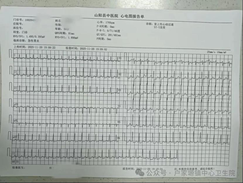 患者就诊时心率高达180次/分钟,伴有头晕、气短等症状,情况较为紧急。卫生院医护团队结合患者病情,迅速评估后决定采用Valsalva实验这一安全、便捷的物理治疗方法进行救治。在医护人员的专业指导下,患者配合完成规范操作,仅3分钟后,心率便逐渐降至正常范围,不适症状明显缓解。后续经心电图复查及观察,患者生命体征平稳,已顺利康复出院。