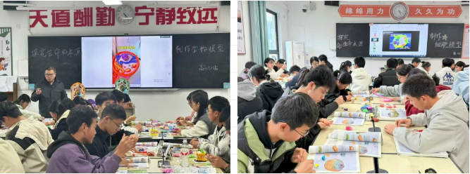 为落实生物学科核心素养,激发学生学习生物学的兴趣,近日,陕西省柞水中学高一年级生物备课组成功举办了“探究生命本源,细胞模型制作”活动。在本次活动中,高一生物备课组长胥指伪老师统筹组织,年级组长孙丹老师及全体班主任给予了大力支持。全体高一生物教师,特别是王丹、朱沐雨两位老师通力合作,积极引导学生发挥创意,将微观的细胞结构以生动立体的形式呈现出来,让生命的奥秘在校园中熠熠生辉。