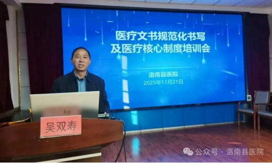 本次培训聚焦医疗工作的关键环节与常见薄弱点,围绕“医疗文书规范化书写”与“医疗核心制度落实”两大核心模块展开,有效提升了医务人员对医疗文书规范性及核心制度执行严肃性的认识。全院上下将以此次培训为新起点,严格遵守规范,认真落实制度,共同推动洛南县医院医疗质量与安全管理水平迈上新台阶,为人民群众提供更加安全、优质、高效的医疗服务。