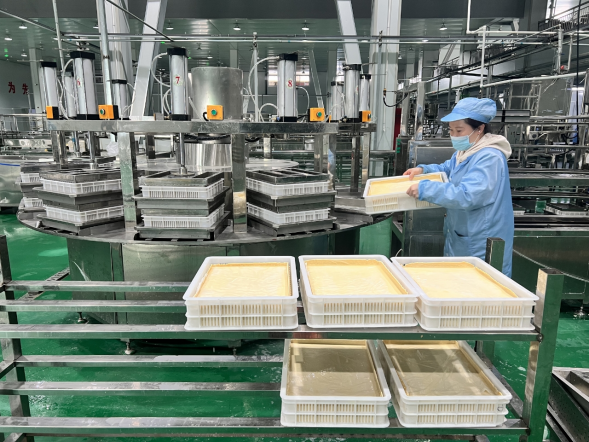 产业发展的最终落点是带动百姓增收。洛南构建“企业+集体经济+农户”联农带农机制,豆腐产业遍布洛南县16个镇(街道),产业链企业超1000家,带动1.5万户农户4.2万人增收。“以前出去打工,现在在家门口上班,既能挣钱又能顾家。”洛南县保安镇三义村村民黄长合常年在豆腐产业园包装车间工作,每月收入稳定。