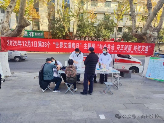 2025年12月1日是第38个“世界艾滋病日”,今年的宣传活动主题为“社会共治、守正创新、终结艾滋”;性病防治宣传主题为“防治性病、促进生殖健康”。为进一步推动艾滋病性病防治工作,营造全社会参与艾滋病性病防治的良好氛围,倡导将“性病防治主题宣传周”活动与“世界艾滋病日”主题宣传活动相结合。12月1日上午,由商洛市商州区卫健局统一组织,区卫健局、区疾控以及城区各医疗机构集中在北新街文化广场开展宣传活动。