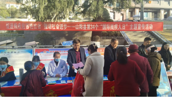 12月3日,商洛市山阳县残联组织开展以“促进残疾包容性社会,推动社会进步”为主题的第三十四个“国际残疾人日”主题宣传活动,在县政府广场举行。