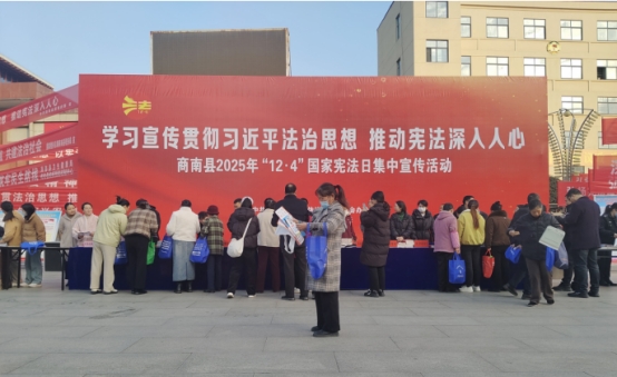 为深入学习宣传贯彻习近平法治思想,大力弘扬宪法精神,维护宪法权威,12月4日上午,商洛市商南县委依法治县办组织30多个成员单位在商南县人民广场开展“12·4”国家宪法日集中宣传活动。