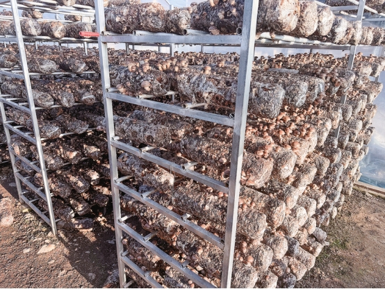 11月19日,在店坊河村香菇种植基地,暖阳下的香菇长势良好