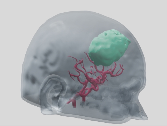 基于影像重建的病变组织模型,三维医学实验室采用增强现实投影与3D打印导板相结合的方式,辅助手术入路规划。这一尝试在一定程度上提高了手术的精准度,为手术的安全开展提供了更多保障。