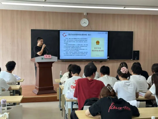 针对新入职员工及晋职员工,医患沟通办分别于5月30日、8月22日组织专场培训,向共计220人解读《医疗纠纷预防及处理》及《医疗法律法规》,让依法执业理念从从医“第一步”入手。为适应临床一线工作需求,医患沟通办受邀分别于急诊医学科、胸外科、感染科二病区开展《医疗投诉及纠纷的处理和预防》《医疗纠纷预防与处置指南》等定制化培训,有效提升专科风险应对能力。面向医疗专业实习生、助理全科及基层卫生人才、行政职能科室工作人员,医患沟通办分别于C-4学生教室、临床技能培训中心、行政三楼会议等开展多场《医疗法律法规》及投诉案例会商研判培训,累计培训逾300人次。